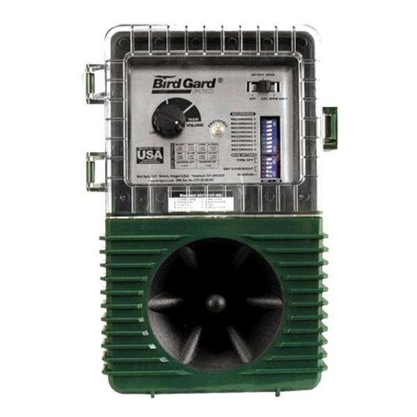 Deze professionele vogelverjager met een bereik tot 6000 m² maakt 8 verschillende geluiden van roofvogels en noodkreten van de specifiek te verjagen vogels. Instelbaar in volume, lengte, soort vogel, tijdklok, willekeurig tijdstip (dag, nacht, 24 uur). De opgenomen vogelgeluiden zijn paniekroepen van de desbetreffende vogelsoort. Wanneer een vogel van dezelfde soort die noodkreten hoort, zal hij vluchten omdat hij denkt dat hij in gevaar is. Andere opgenomen geluiden zijn die van roofvogels, waardoor bepaalde vogelsoorten ook zullen vluchten omdat ze gevaar vermoeden.